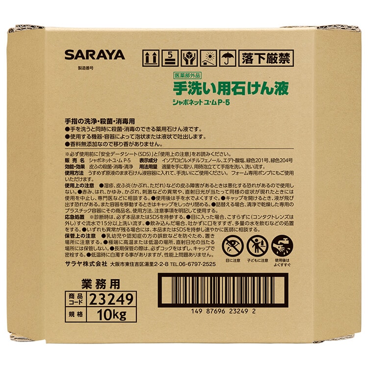 - 23269:手洗い用石けん シャボネットユ・ムP-5 18kg 八角B.I.B. 〔原液使用〕