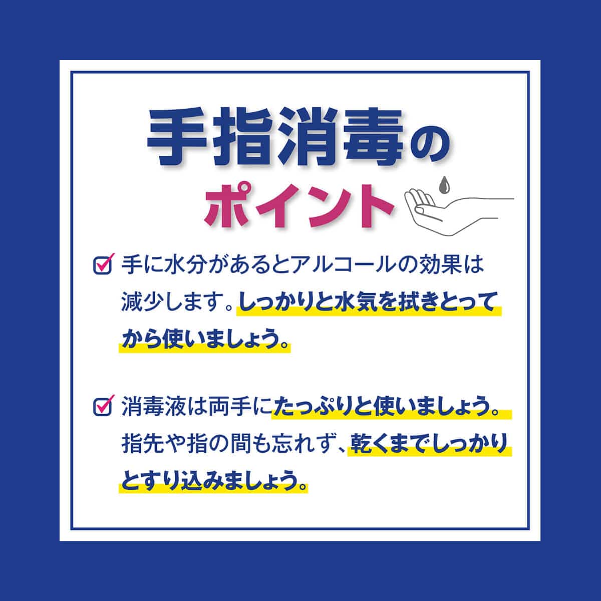 ・手に水分があるとアルコールの効果は減少します。しっかりと水分を拭きとってから使いましょう。