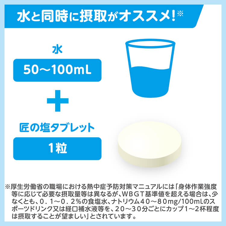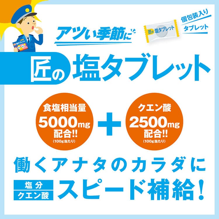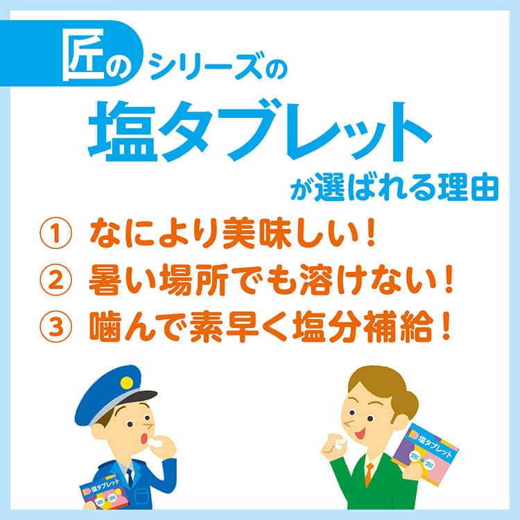 匠の塩飴とは違った美味しさで猛暑で失われる塩分を素早く補給できます。