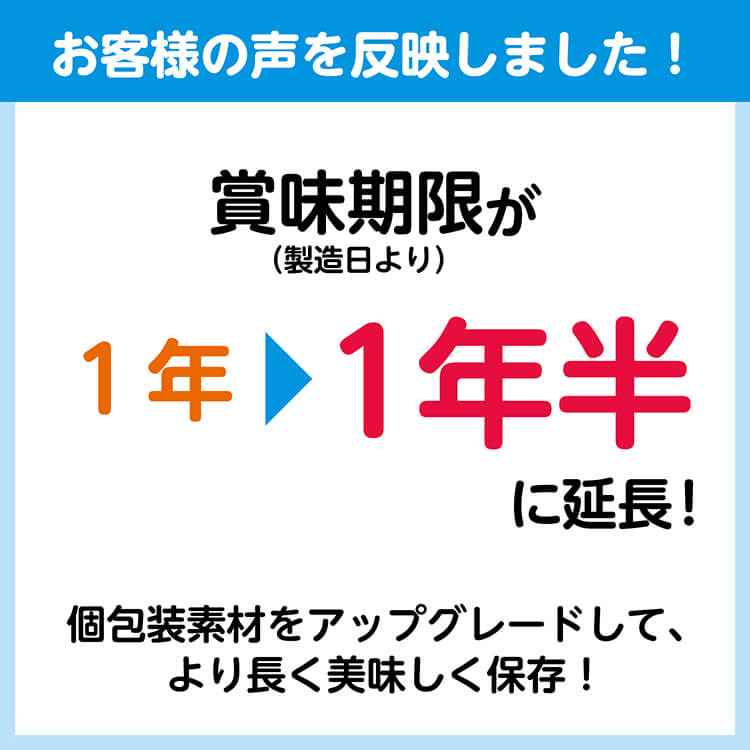 ・開封後はお早めにお召し上がりください。・本品は保管条件によって変色やべたつきが生じることがありますが、お召し上がりいただいても差支えありません。