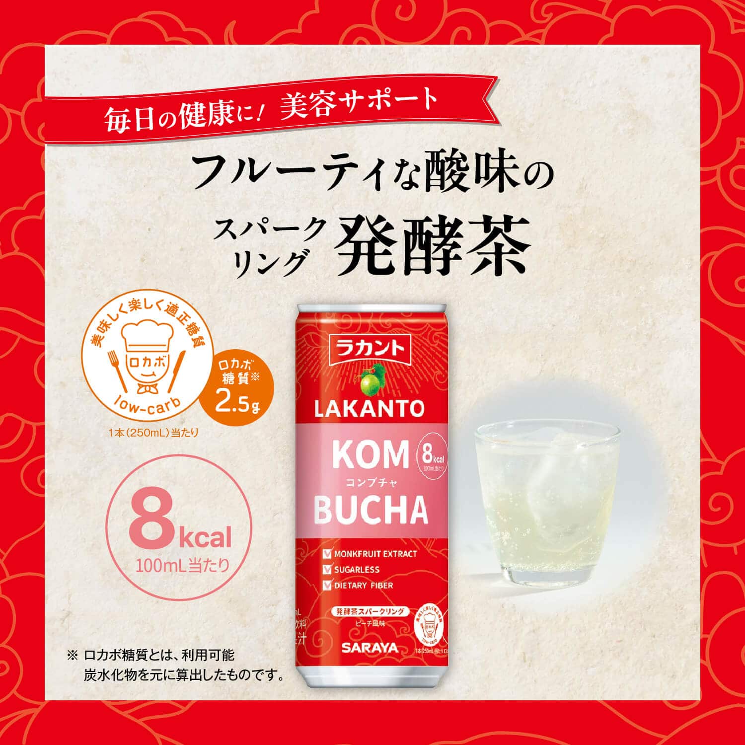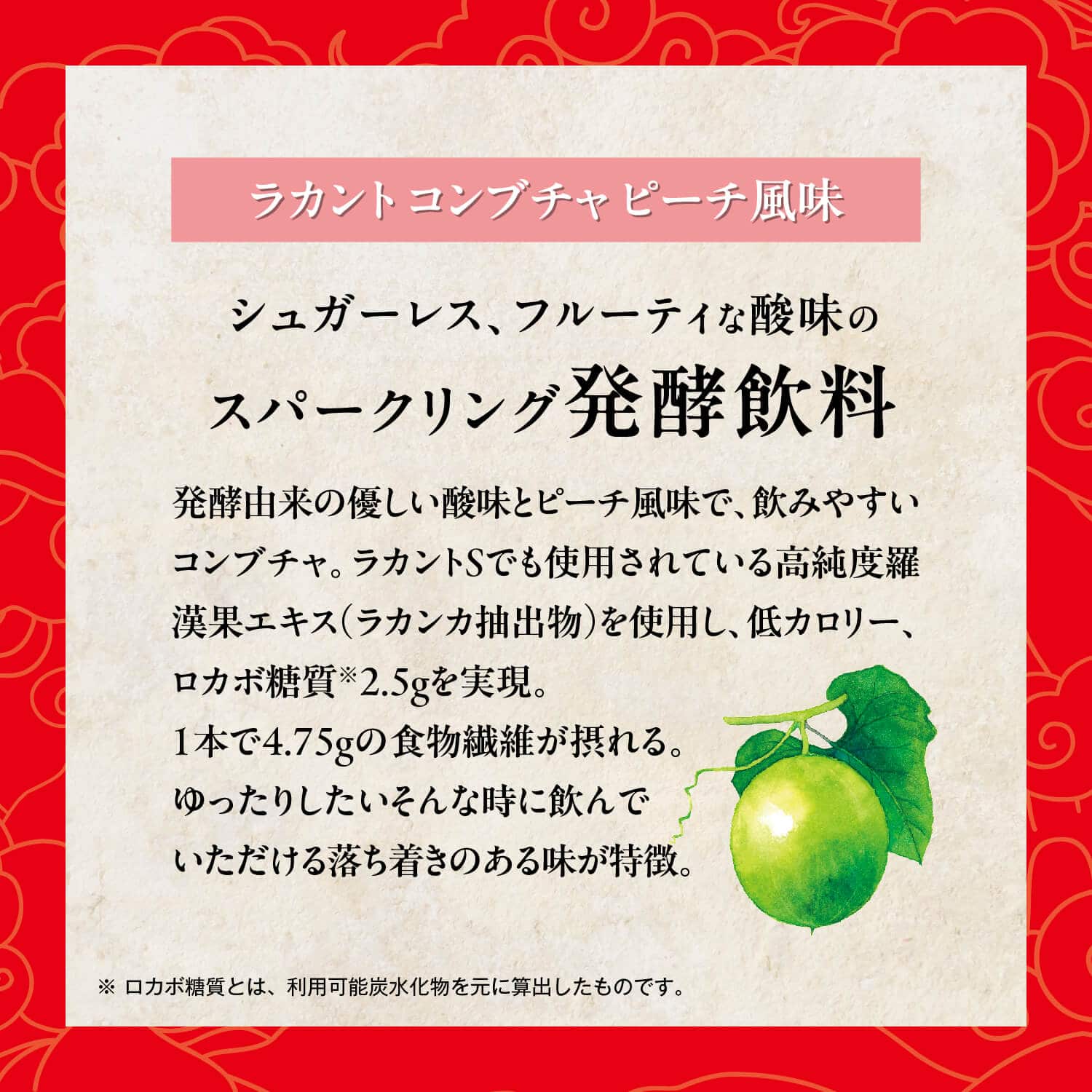 コンブチャ原料の酸味を活かしたフレーバーで、コンブチャとの相性がいいピーチ風味。