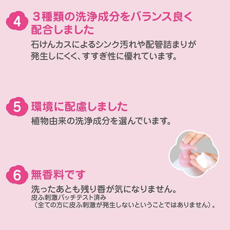 石けんカスによるシンク汚れや配管詰まりが発生しにくく、すすぎ性に優れています。