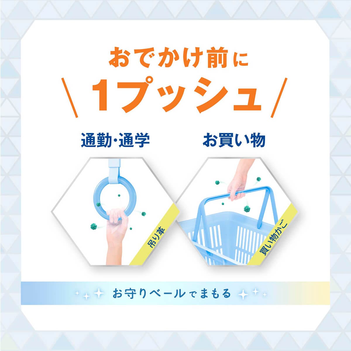 キープッシュは、おでかけ前に1プッシュすることで清潔つづく、新しい消毒スタイルです。