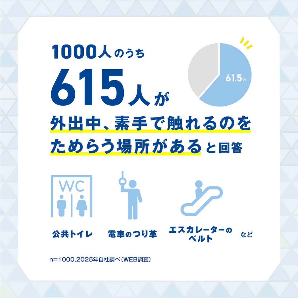1000人のうち615人が外出中、素手で触れるのをためらう場所があると回答しました。
