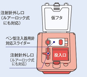 仮ロック・完全ロック機能付きのため、投入口からの針のはみ出しが原因で起こる針刺し切創を防ぎます。(完全ロック後は開閉不可)