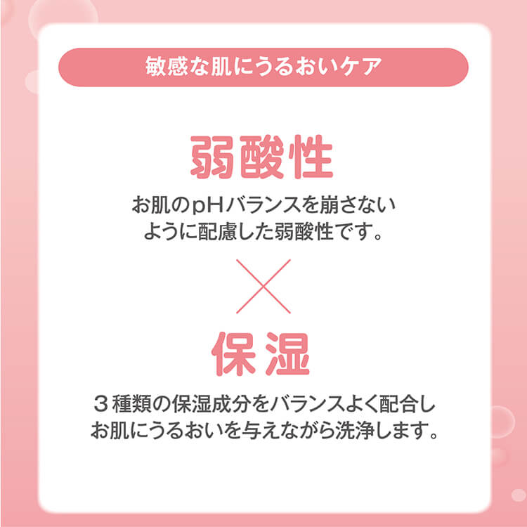 お肌のpHバランスを崩さないよう配慮した弱酸性です。