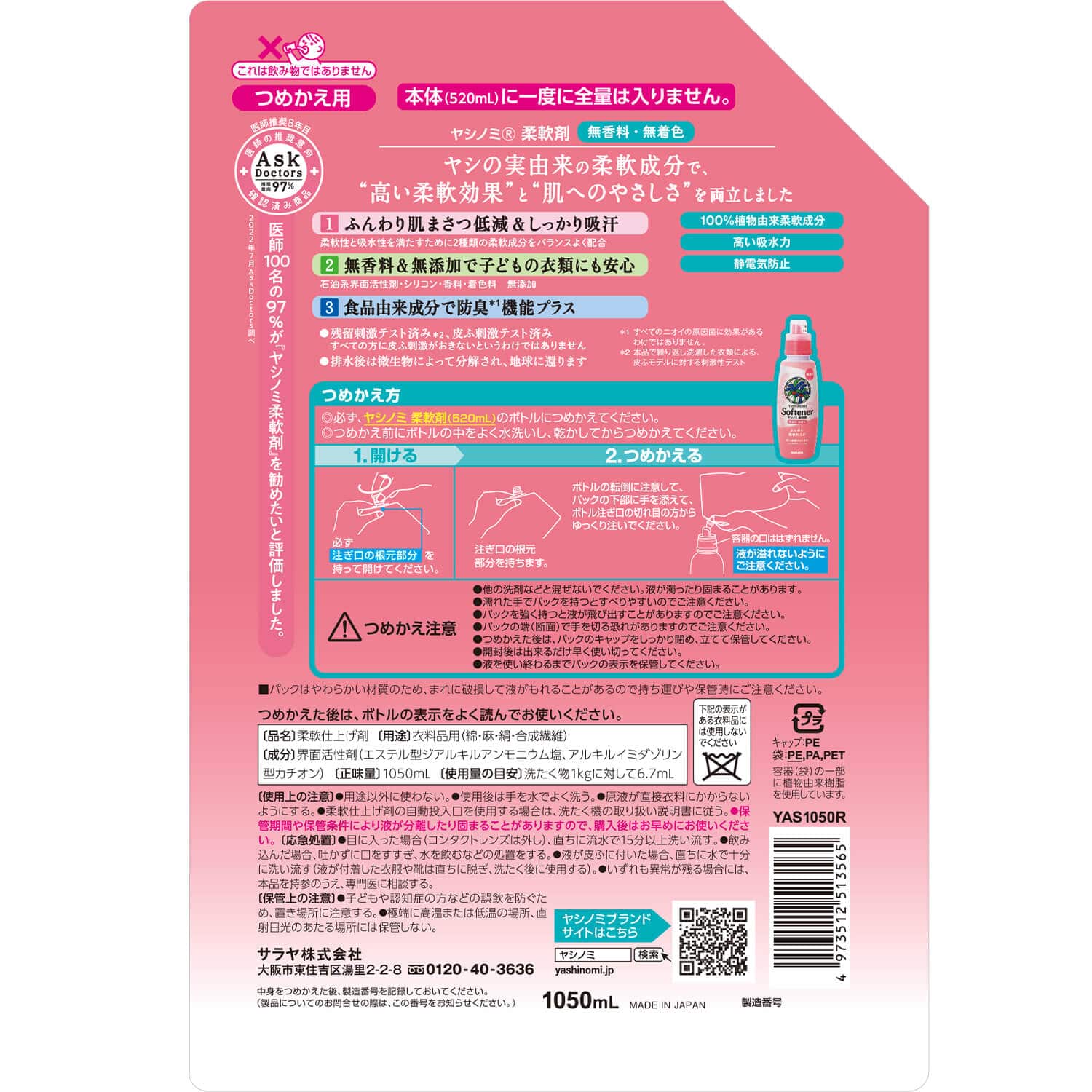 ・必ず、ヤシノミ 柔軟剤 (520mL)のボトルにつめかえてください。 ・つめかえ前にボトルの中をよく水洗いし、乾かしてからつめかえてください。 |