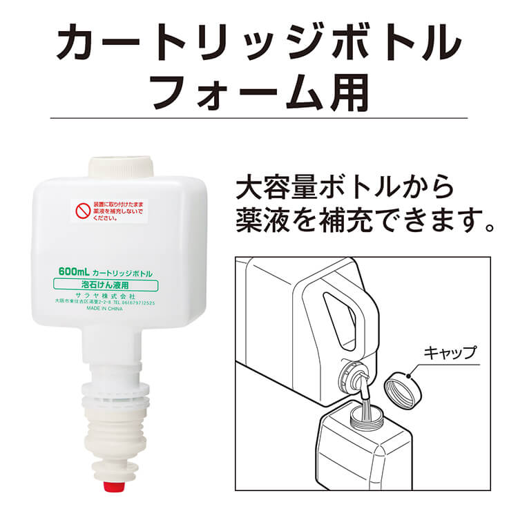 | 梱包内容 | 【UD-600箱内】本体、両面テープ、カギ、取扱説明書、取付板 トレーF型 ライトグレー、カートリッジボトル 600mL フォーム用 |