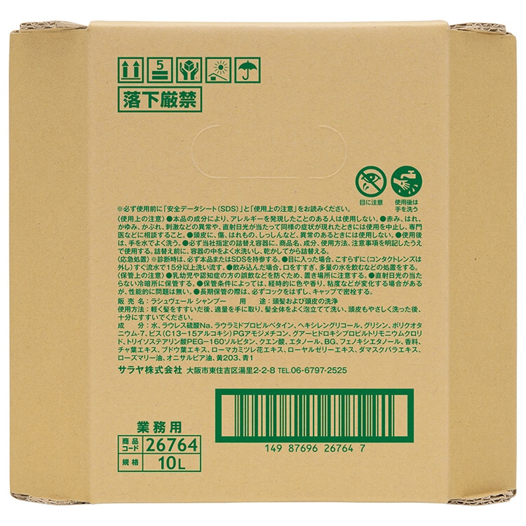 | 成分 | 水、ラウレス硫酸Na、ラウラミドプロピルベタイン、へキシレングリコール、グリシン、ポリクオタニウム-7、ビス(C13-15アルコキシ)PGアモジメチコン、グアーヒドロキシプロピルトリモニウムクロリド、トリイソステアリン酸PEG-160ソルビタン、クエン酸、エタノール、BG、フェノキシエタノール、香料、チャ葉エキス、ブドウ葉エキス、ローマカミツレ花エキス、ローヤルゼリーエキス、ダマスクバラエキス、ローズマリー油、オニサルビア油、黄203、青1 |