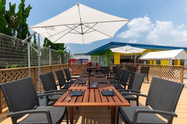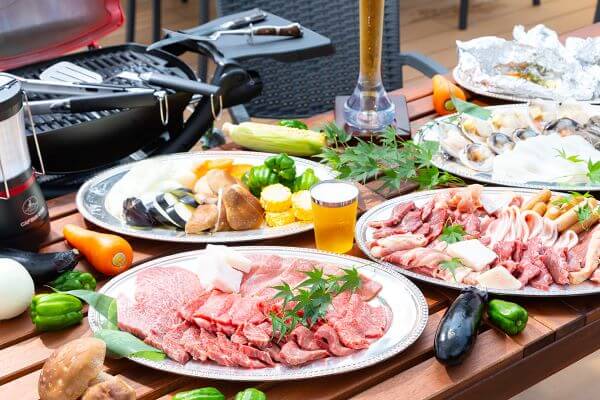 ウッドデッキのテラスいっぱいに、お肉の焼いた香りととジューシーな音が広がります。