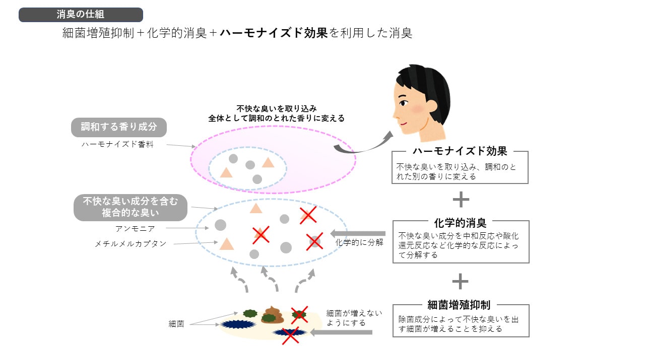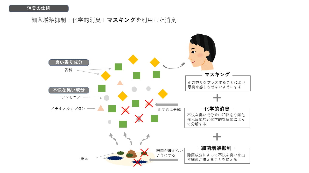 三つの技術を用いて、臭気を長時間効果的に抑制