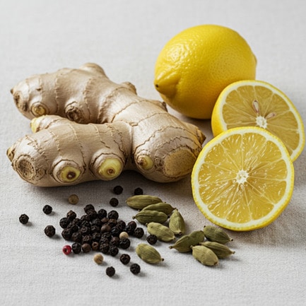 ブラックペッパーはピリッと強い辛味と野性的な香りをもち、カルダモンは樟脳やユーカリに似た香りと柑橘のような爽やかで上品な香りをもつスパイスです。
