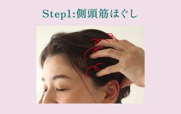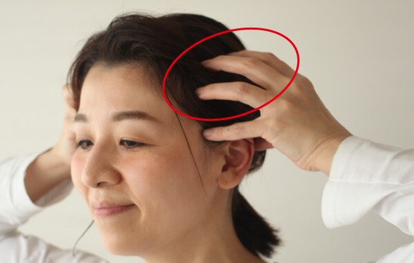 3. 徐々に位置を上にずらし、こめかみから頭頂部付近まで、5セットほど行いましょう。