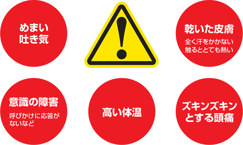 熱中症を引き起こす条件は、「環境」「からだ」「行動」によるものが考えられます。