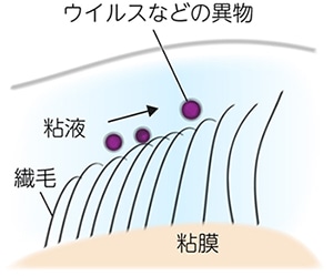 ・ホコリや異物を粘液とともに上気道から洗い流す