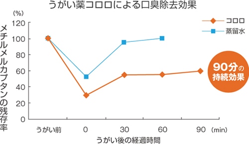 うがい薬「コロロ」は、粘膜への刺激が少ないにもかかわらず、しっかりと殺菌・消毒でき、口臭の原因も除去します。