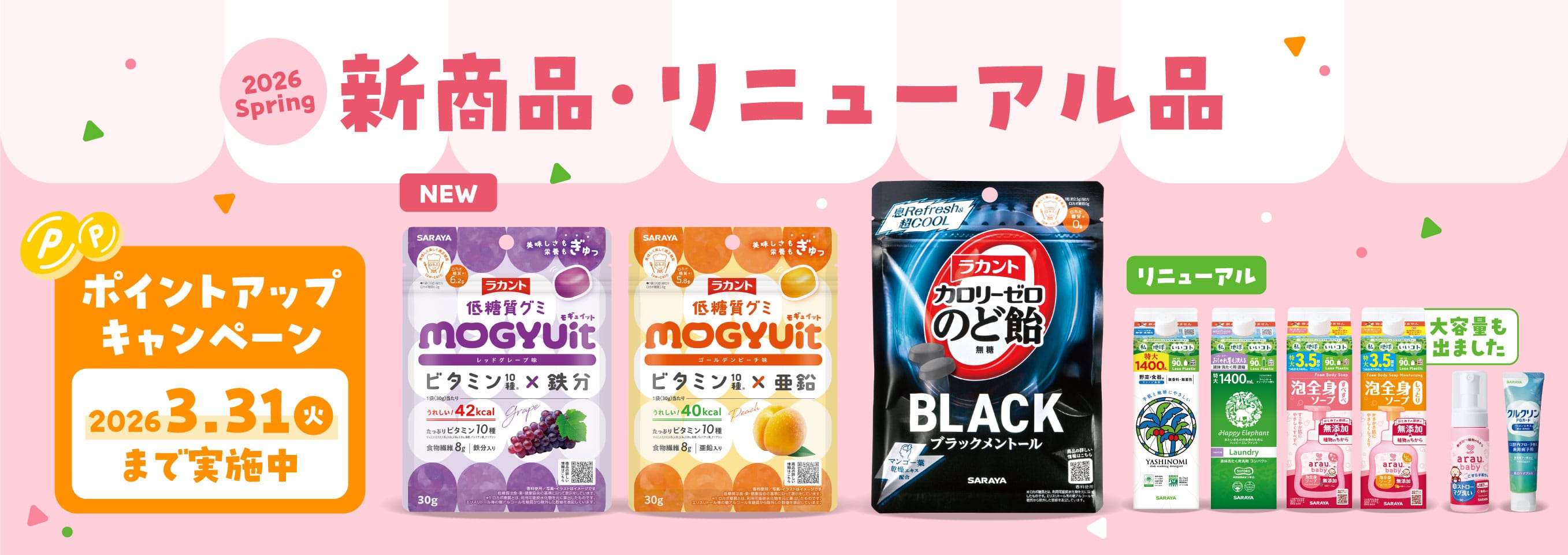 期間中、新商品を含むご購入金額に応じて、さらにお得なポイント付与とクーポンプレゼントのチャンス!